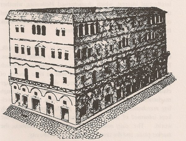 The ordinary people lived in apartment buildings which to some extent were not so different from what we find in the lower middle-class sections of large cities all over the world today. The buildings were usually two or three stories high with the ground floor space reserved for shops or storerooms and the upper floors for living space. Such buildings were known as insulae, literally islands, because they stood surrounded by narrow streets on all sides.