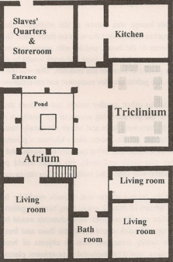 Various other, smaller rooms, led off from the atrium. These were the private living rooms of the family; it was here that the children were kept and where the family would sleep. There were also service rooms, like a kitchen, a private latrine, store rooms, a bathroom, living quarters for slaves, and so on. If the owner was really well-to-do, his house would possess a private garden with spaces for walking and for sitting outside.