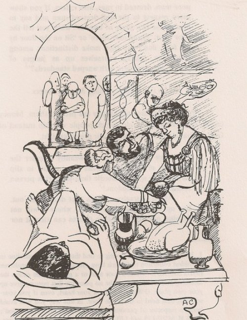 What must have happened is the following. Before the time appointed for the Eucharist, Gaius and his wife may have invited the richer members of the community to a meal in the triclinium, which, as was explained above, held about nine couches. When the others arrived, the families of the workers and the slaves, they were probably made to wait in the atrium.
